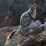 Outback Australia is a wonderland of wildlife, most of it harmless and quite loveable, with a few notable exceptions! Best known of course are kangaroos and wallabies, Australia's marsupials who keep their young in a pouch. The Koala, a tree dwelling marsupial (and not a bear!) lives in the temperate regions and spends all its life in eucalyptus trees, munching its leaves. It seems cuddly, but isn't really; if annoyed it may give you a nasty scratch. The large kangaroo too, can be quite a fighter when cornered. The possum is a nocturnal marsupial and widespread around Australia. Unique to Australia and parts of New Guinea are the monotreme or egg-laying mammals like the platypus and echidna.