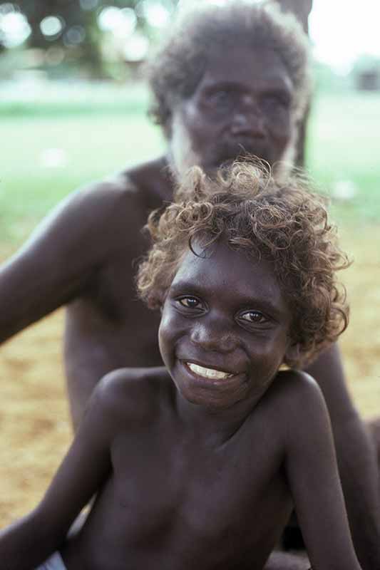 A boy and his grandfather relaxing at home in Nguiu.
