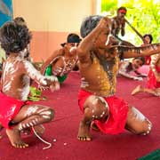 Shortly after the opening of Djarragun College in Gordonvale in 2001, the Torres Strait Islander boys formed a group that performed traditional dances; they had many elders, family and workers at the school who coached them; their islands were never settled by outsiders and their language and culture stayed alive. But it took almost four years for an Aboriginal dance group to be formed because it proved very difficult to find any adults who could teach them. Eventually, with the encouragement and coaching by non-Aboriginal teachers and watching videos of dancing, a start was made and over the years this blossomed into a very active Aboriginal dance group, where boys and girls perform dances that depict activities like looking for bush honey, fishing along a crocodile infested creek, swatting mosquitoes, the movements of the cassowary (a large bird) plus the vigorous Arnhem Land-style "shake a leg" dances, accompanied by the sound of the didjeridu, clapsticks and plywood boomerangs. The didjeridu (or didgeridoo, yirdaki) was traditionally only played by people of the eastern Kimberley region and Arnhem Land, and then only by the men, but it has now well and truly been adopted here as well. Although these are essentially modern adaptations and don't have the connection with traditional myths as is still the case in the Northern Territory, these dances are now becoming "traditional culture" in this region and were performed with pride by the children at the school and at various cultural festivals in the good days, when this was the best and most inclusive indigenous school under its founding principal during the decade finishing in 2010.