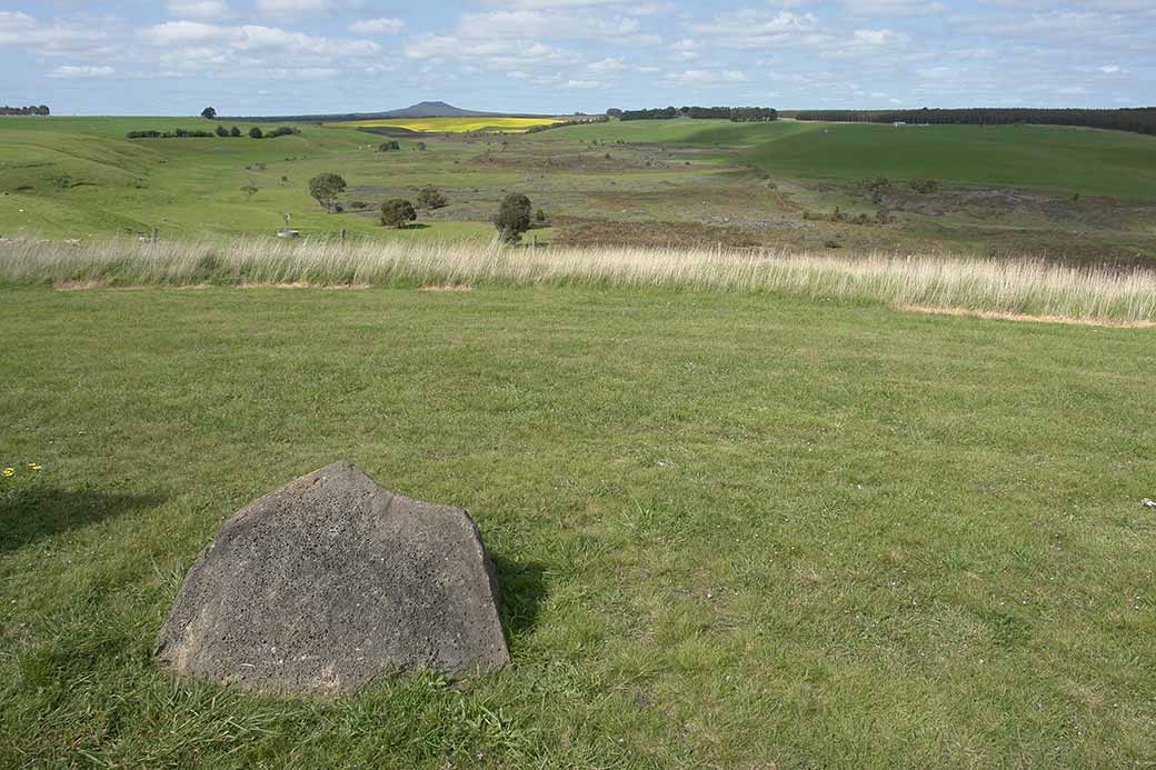 View towards Harman Valley and Mt Napier (447 m), a volcano which last erupted 7,000 years ago; the landscape is a result of that eruption. On the road from the south to Hamilton, south western Victoria.