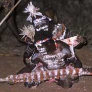 To make sure the ceremony is done properly, the men of the moiety, opposite to that of the "kirda" (owners) act as "policemen"; they are called "kurdungurlu" and they prepare the ceremony ground and the objects needed, they paint the dancers with the appropriate designs and accompany them by singing the ritual songs, accompanied by boomerangs ("karli"), clapped together in time. Thus the whole community ensures the rituals are done according to ancient and unchanging "Law", right until the final night, in which men dance with elaborate headdresses, a ceremonial pole is taken down by the women and large torches are set alight in a spectacular finale.