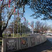 The Alpine Way continues to Khancoban, the site of the Murray 1 Power Station, one of seven hydroelectric power stations. It is part of the Snowy Mountains Scheme, a vast hydroelectricity and irrigation complex constructed between 1949 and 1974 and now run by Snowy Hydro. The Snowy Mountains Highway, in Kosciuszko National Park, leads north to Cabranarra and Kiandra, an abandoned gold mining town; the ruins can still be seen. The small town of Talbingo is further on, with the Snowy Hydro Tumut 3 Power station and the Talbingo Dam, the head storage for the operation of this power station. Albury on the border with Victoria is on the northern bank of the Murray River. The city of Wodonga, on the other bank, is nowadays almost continuous with it: Albury-Wodonga. It is the traditional land of the Wiradjuri people. The War Memorial on Monument Hill can be seen from many parts of this significant regional city.