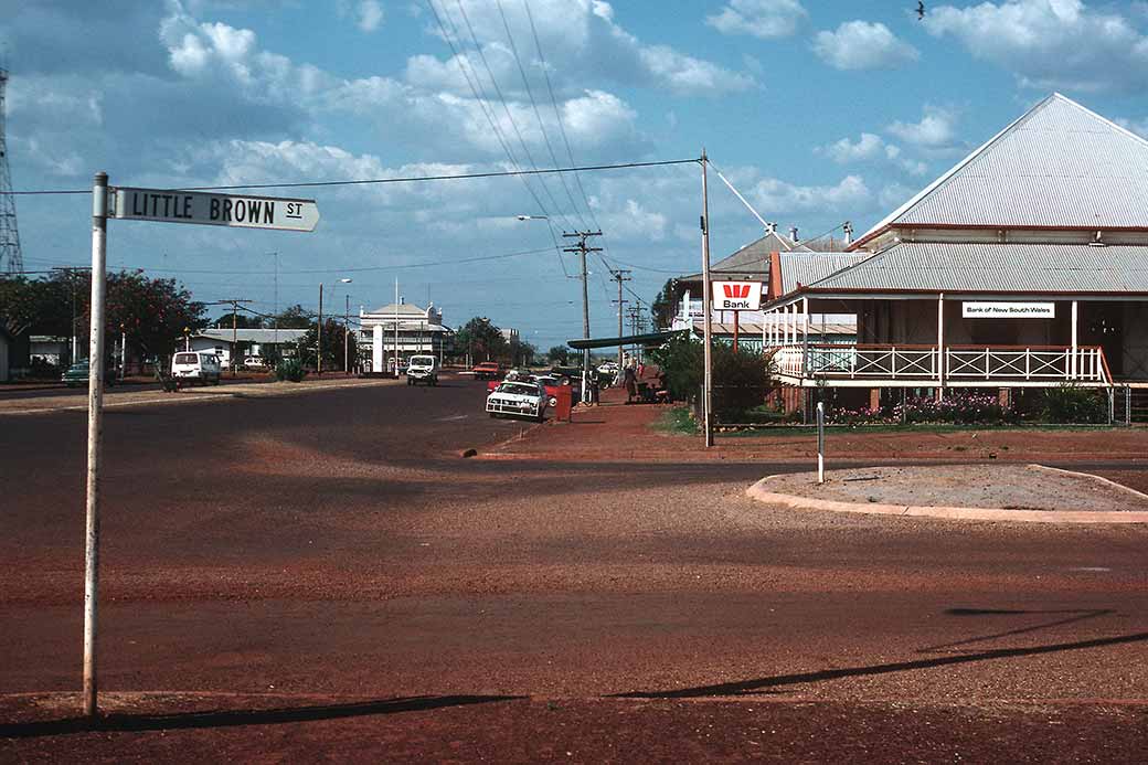 Landsborough Street in the town of Normanton, 150 kilometres northwest of Croydon. In the distance is the Carpentaria Shire Council building.