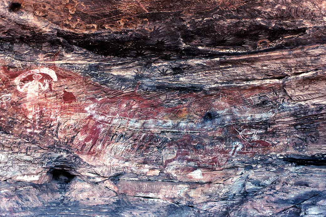 “Jilingarra”, the Children's Python and other Aboriginal mythological figures on rock paintings, Nganalam Art Site in Keep River National Park, in the north west of the Northern Territory, near the Western Australian border.