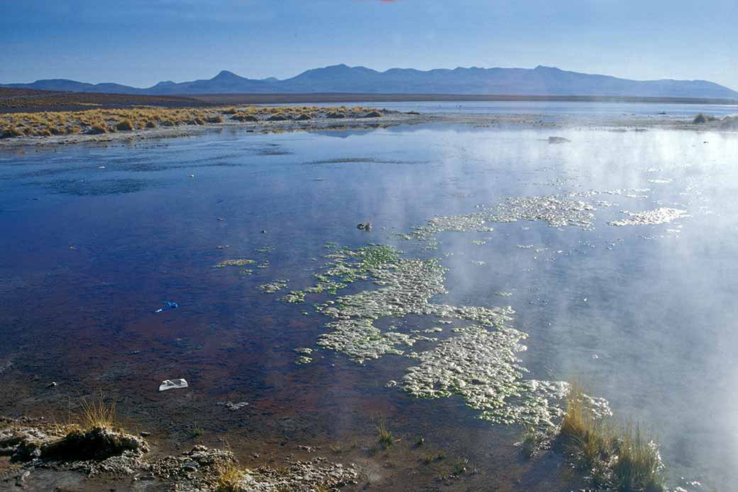 Sulphur deposits on a thermal lake at Chalviri creek, in the Eduardo Avaroa Andean Fauna National Reserve in Bolivia's far south west.