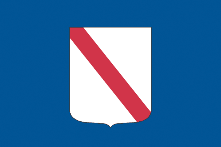 Campania is a region in southern Italy, the second-most-populous and most densely populated region of Italy, located on the Mediterranean Sea; its capital city is Naples (Napoli). The coat of arms was adopted on 21 July 1971, a white shield with a diagonal red band. The flag is a fairly light blue with the coat of arms in the centre.