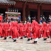 The Jongmyo Daeje or Jongmyo Jerye Ceremony is a seasonal Confucian ceremony held at Jongmyo, the Royal Ancestral Shrine of the Joseon Dynasty in Seoul, to honour the past Joseon kings and their consorts, who founded the country and whose mortuary tablets are enshrined there. It was also called Jongmyo Daeje, the Great Jongmyo Rite because it was the largest and most important memorial rite held by the Joseon Dynasty. Accompanied by solemn music and dancing, the confirmed formalities of the service have been preserved almost in their original forms more than 500 years since 1464: Jongmyo Jerye could be considered the oldest comprehensive Confucian-influenced ritual culture in the world.