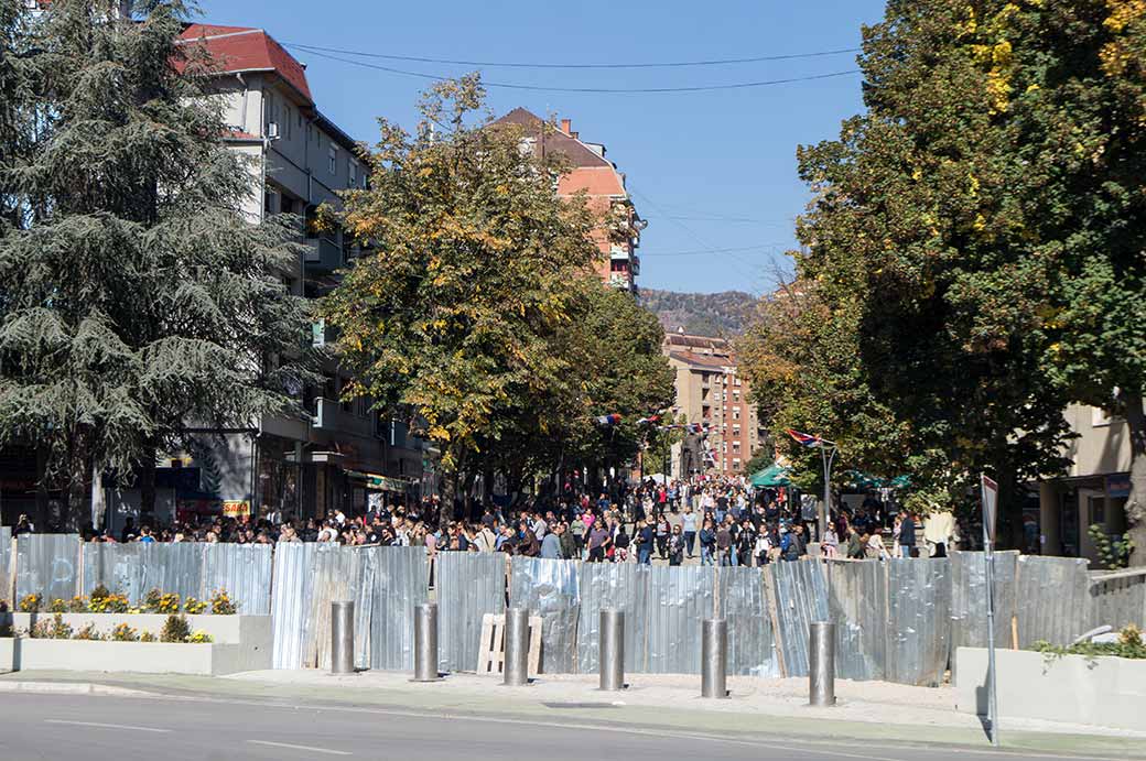 Barriers across the road from the Ibar River Bridge leading into the Serbian sector of Mitrovica (Kosovska Mitrovica in Serbian parlance).