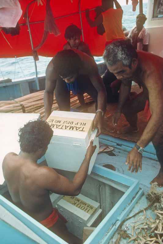 The box with ballot papers, results from an election, from Tamatam island carried onto the “Toku”, an inter-island boat.