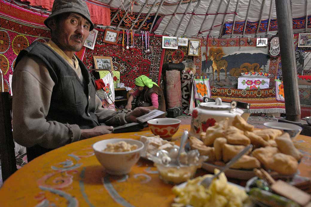 Serik and his wife Kalyaa in their “kïiz üy”, felt house or yurt, Sagsai Sumiin Bigeeu.