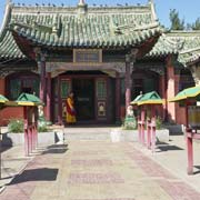 From the 1930s, the city was built in typical Soviet style with big apartment blocks, large theatres and enormous government buildings, destroying most temples and monasteries, some of those subsequently rebuilt and restored. The centre of the city is the vast Sükhbaataryn Talbai (Sükhbaatar Square). There is a large marble construction in front of the Parliament House and a statue of Genghis Khan, flanked by his son Ögedei en grandson Kublai Khan. The wide Enkh Taivny Örgön Chölöö, (Peace Avenue), the main street, stretches on both sides, with shops, cafés and busy traffic. There are many points of interest, like the Gandan Monastery, the Winter Palace of the Bogd Khan, the National Museum and many others.