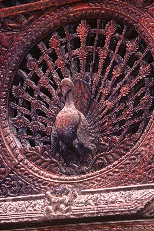 Detail of the 15th century Peacock window in the Pujari Math Woodcarving Museum in Bhaktapur.