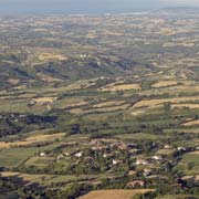 The Most Serene Republic of San Marino (its official title) is entirely surrounded by Italian territory, a small sovereign country in the Apennine mountains 220 kilometres north of Rome. The capital is San Marino, a picturesque town on Monte Titano, the highest mountain (755 metres) with three peaks; on each peak is a tower, dating back to the middle ages and is a feature on San Marino's flag. The total area of the republic is 61 km² and it has a population of around 30,000 people, with about 4,500 living in the capital.