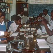 These photos show students at work in the Science lab, doing experiments in Physics and Chemistry during 1974 and 1975.