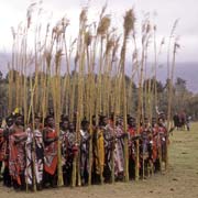 Every year in late August or early September Swazi girls from all over the country set out on foot from Lobamba to gather bundles of reed in a place like Mdutshane, south of Lobamba near Malkerns; they then walk back, singing and dancing as they go, to the residence of the "Ndlovukati", the Queen Mother, in Lobamba. They are young, unmarried girls, dressed in short "indlamu" beaded skirts, often carrying torches, indicating that they had to cut those reeds at night, and the long knives they used.