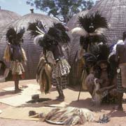 A few days later the final day of the ceremony takes place. Early in the morning, in the sibaya, the King washes himself with water from the various rivers and the sea, carried in dishes by boys accompanying him. A fire is made and the remains of the bull, uneaten fruits, last year's bedding and clothing used by the King is ritually burnt. The regiments again dance and the King joins them for a final dance. The fire is expected to be extinguished by rain and this usually happens! The iNcwala ceremony then comes to an end: the nation is renewed and its kinship with the King is reaffirmed.