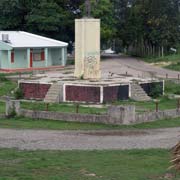 Close to the Indonesian border is the town of Maliana, also the scene of great suffering after East Timor's pro-independence vote in 1999. It is the capital of the district of Bobonaro and its Kemak people still practice traditional weaving called "tais" on backstrap looms. Further west is Balibo, dominated by a large Portuguese fort on the hill overlooking the village. There is a memorial with the names of the people killed by Indonesian militia on 7 September 1999, after it became clear they had voted for independence. It overlooks the square with its Indonesian "Integrasi" monument, an ugly concrete tower topped by a statue of a Timorese peasant happily breaking the bonds of Portuguese colonialism and clutching an Indonesian flag. On the other side of the square is what is now called the "Australian Flag House".