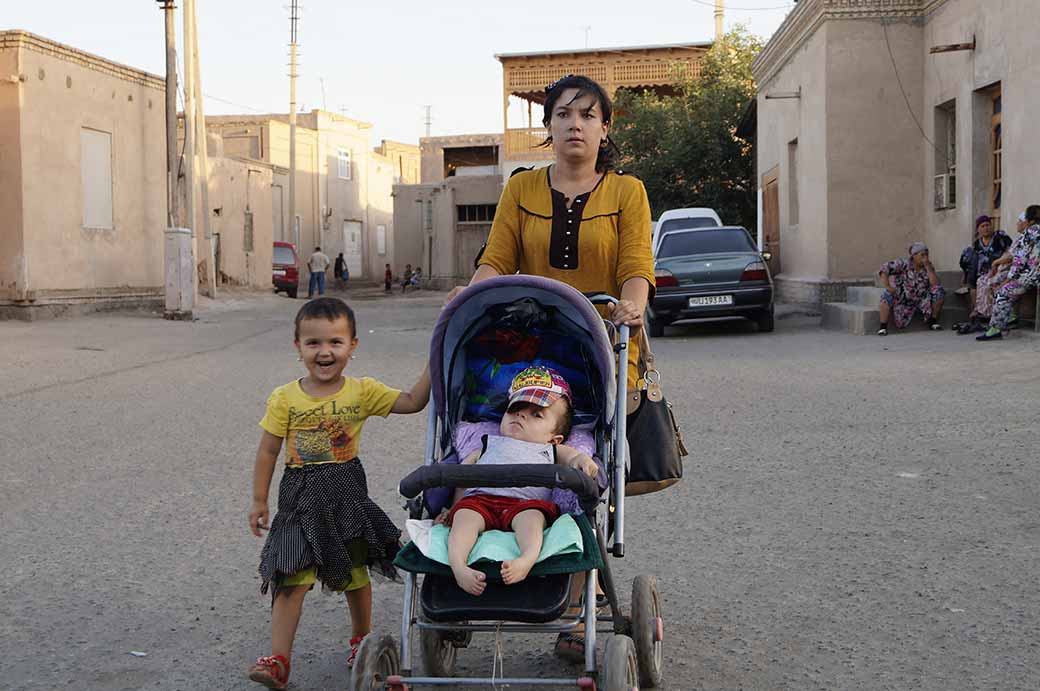 Mother and children in Ichon Qala, the walled inner city of Khiva.
