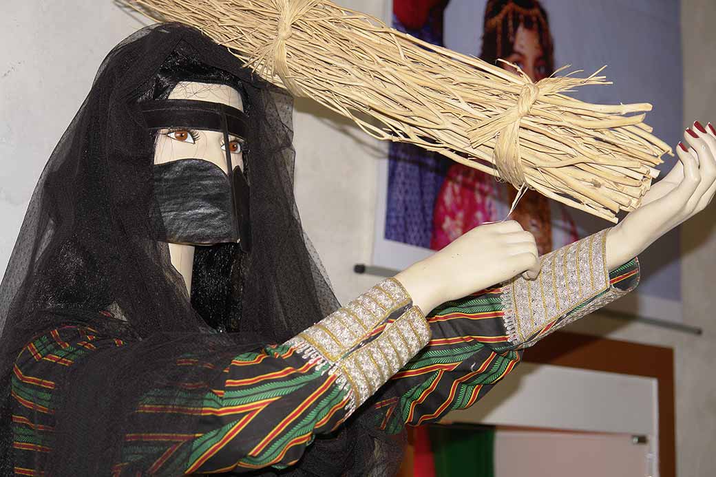 A display of a woman wearing a “Batula” face mask in the Sharjah Heritage Museum.